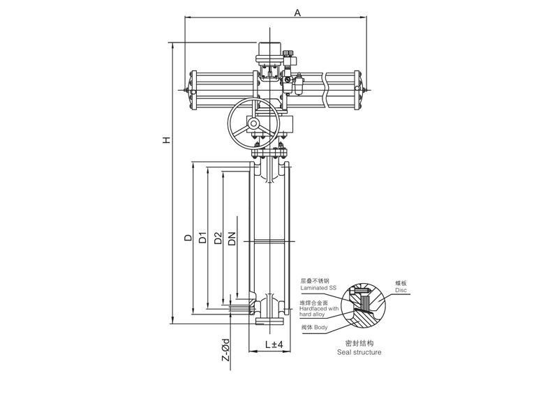 閥門采用層疊型金屬密封結構,密封性能可靠耐高溫。密封面外層為硬質合金鋼片,啟閉過程刮除粘附在閥座密封面介質和結晶,保證密封的可靠性。
