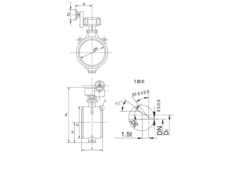 產品名稱及型號:對焊式金屬密封蝶閥 D36(3/2)(H/W/W)