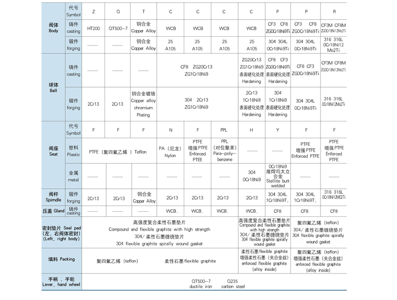 高壓對焊球閥主要零件材料